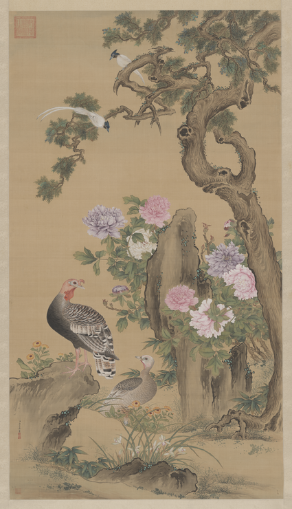 余省牡丹双绶图轴