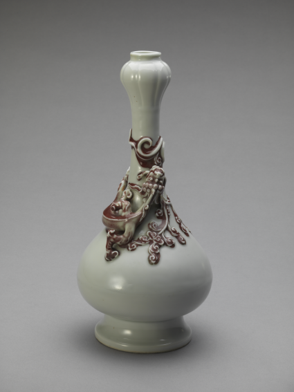 白釉塑贴红蟠螭纹蒜头瓶