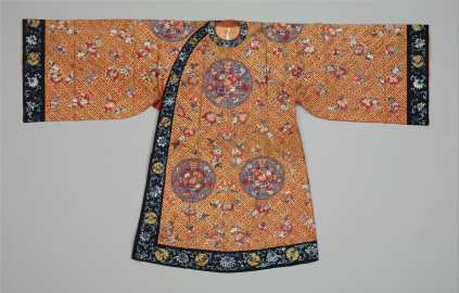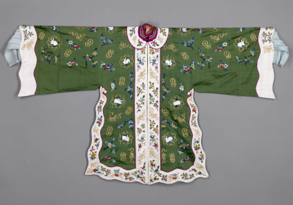 绿色缎绣桂花玉兔金皮球花纹八月花神衣