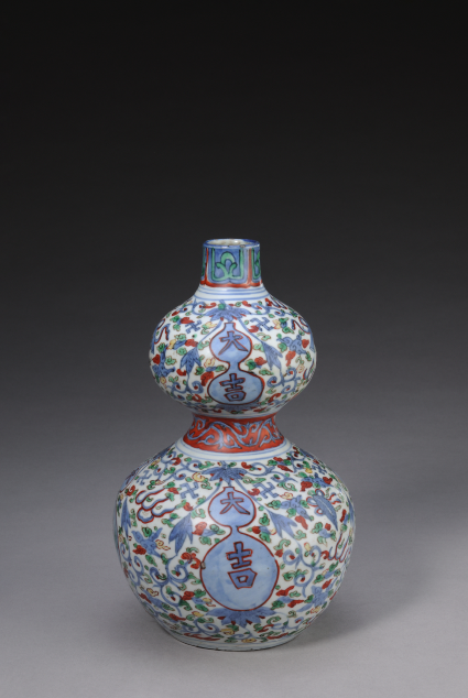 青花五彩“大吉”花卉纹葫芦瓶