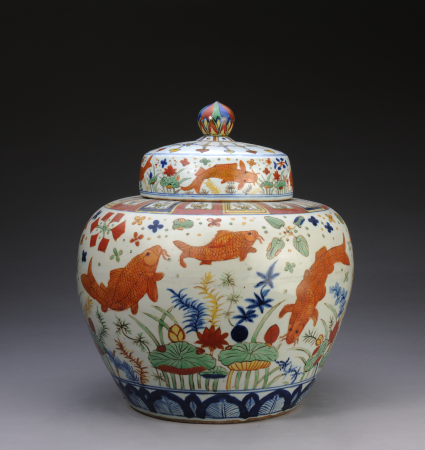 五彩鱼藻纹盖罐