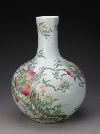 乾隆款粉彩九桃图天球瓶