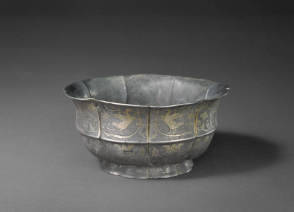 鎏金錾花花鸟纹葵式银碗