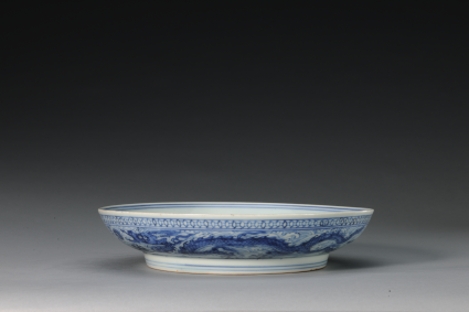 八思巴文四字款青花海水云龙戏珠纹盘